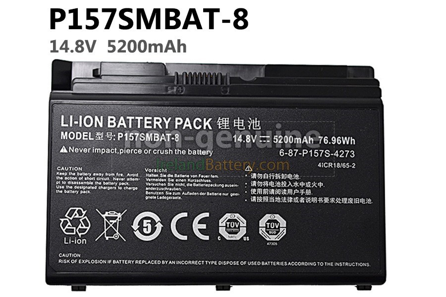 8 cells 5200mAh Hasee P157SM excellent quality battery uses an intelligent control chip, which comes with higher performance and reliability, longer run-time and battery life. Built-in protection circuitry ensures its stability and safety, fast charge but slow power consumption.