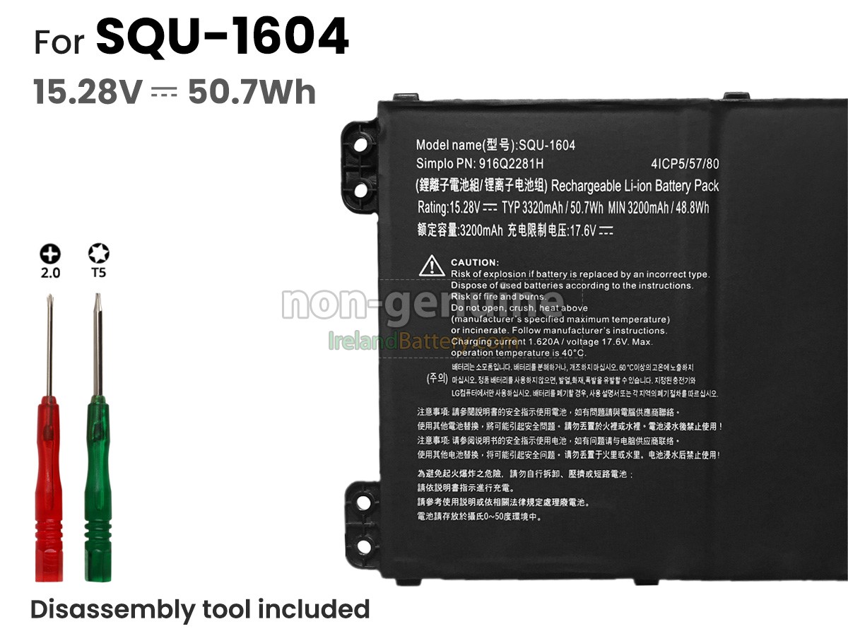 Each Hasee SQU-1604 replacement battery unit is made of high-quality lithium-ion cells for longer last time.