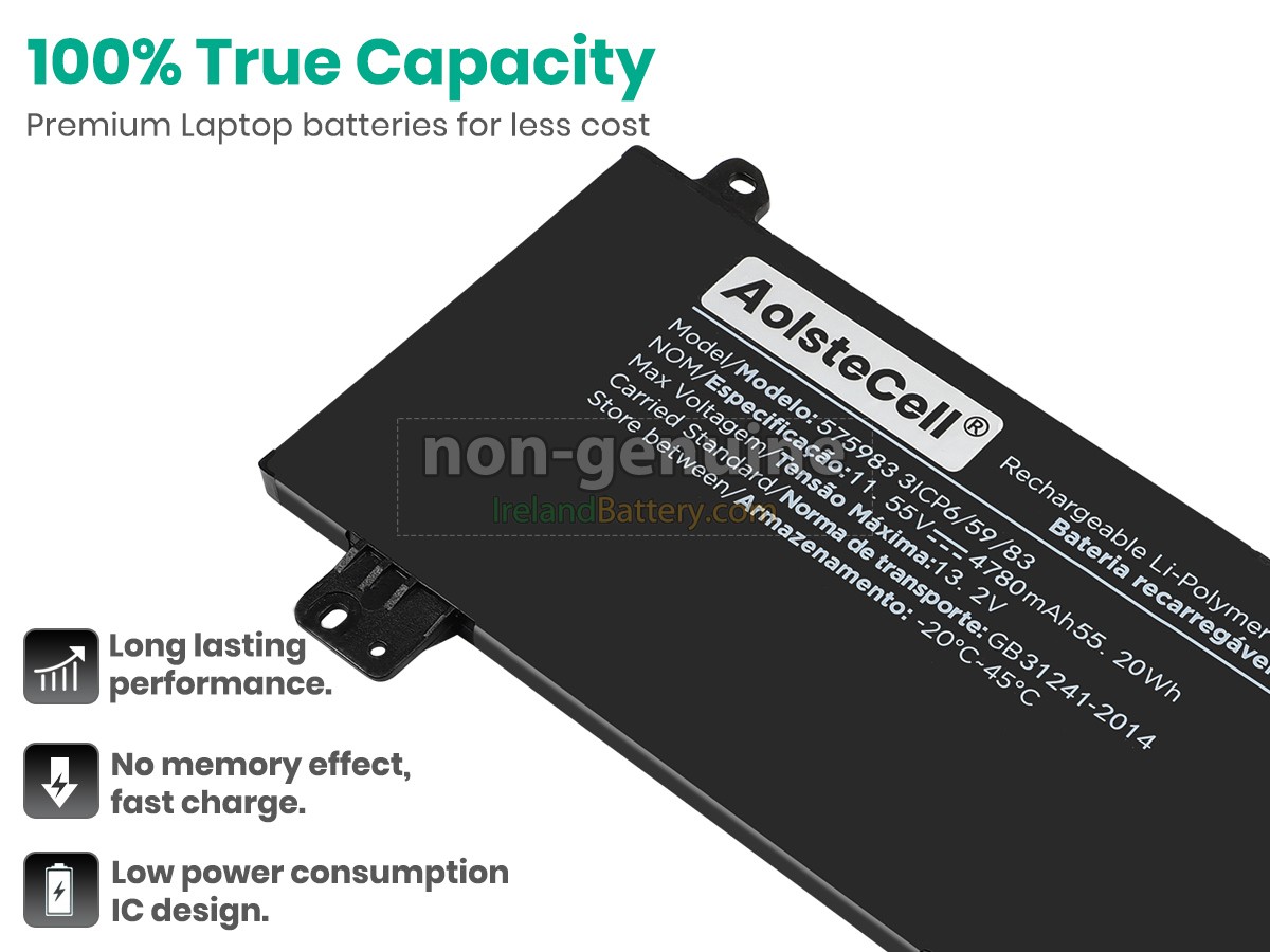 4If your AolsteCell 575983 battery won’t be used for a long time, please charge it once a month and keep battery power over 50%, remove it from your laptop and store it in an antistatic bag in a cool, dry place.