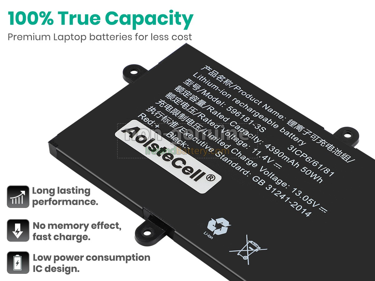 3 cells 50Wh AolsteCell 596181-3S excellent quality battery uses an intelligent control chip, which comes with higher performance and reliability, longer run-time and battery life. Built-in protection circuitry ensures its stability and safety, fast charge but slow power consumption.