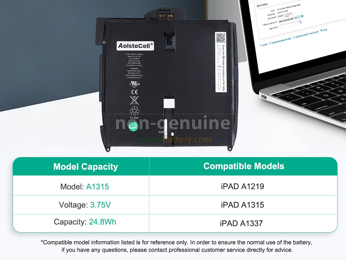 We offer a 12-month warranty to replace the Apple A1337 laptop battery! In the meantime, if your battery fails due to quality problems, we will replace it with a new one for free.