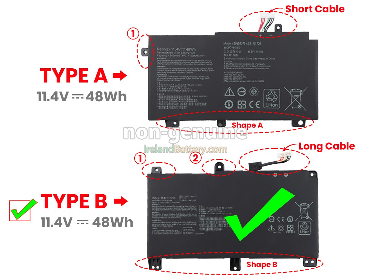 3 cells 48Wh Asus B31N1726 excellent quality battery uses an intelligent control chip, which comes with higher performance and reliability, longer run-time and battery life. Built-in protection circuitry ensures its stability and safety, fast charge but slow power consumption.