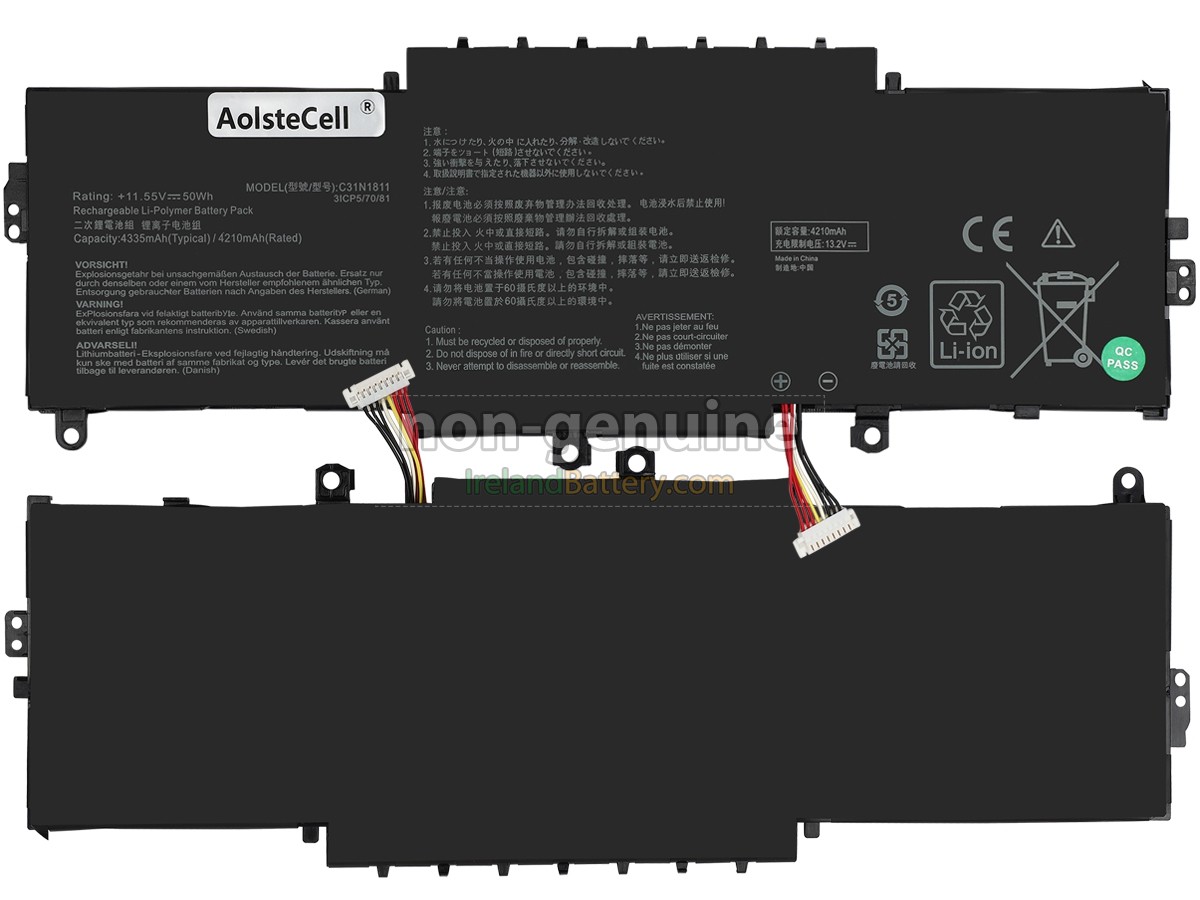3 cells 50Wh Asus ZenBook UX433FA excellent quality battery uses an intelligent control chip, which comes with higher performance and reliability, longer run-time and battery life. Built-in protection circuitry ensures its stability and safety, fast charge but slow power consumption.