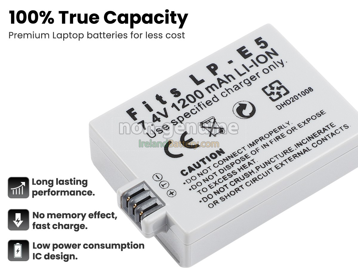 Each Canon EOS REBEL XS 18-55IS replacement battery unit is made of high-quality lithium-ion cells for longer last time.
