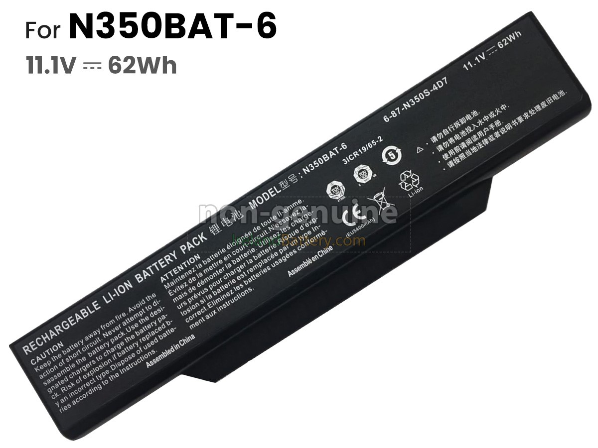 6 cells 62Wh Clevo N350BAT-6 excellent quality battery uses an intelligent control chip, which comes with higher performance and reliability, longer run-time and battery life. Built-in protection circuitry ensures its stability and safety, fast charge but slow power consumption.
