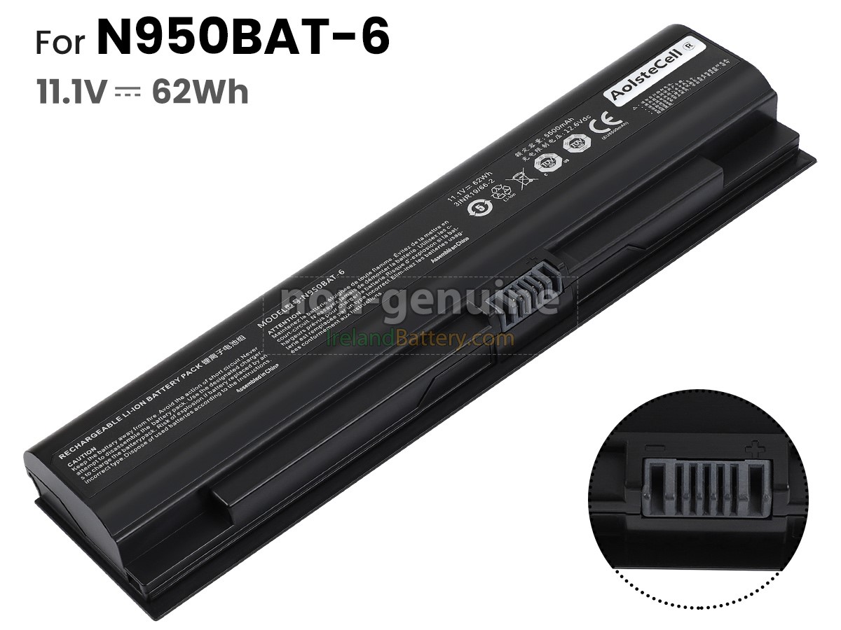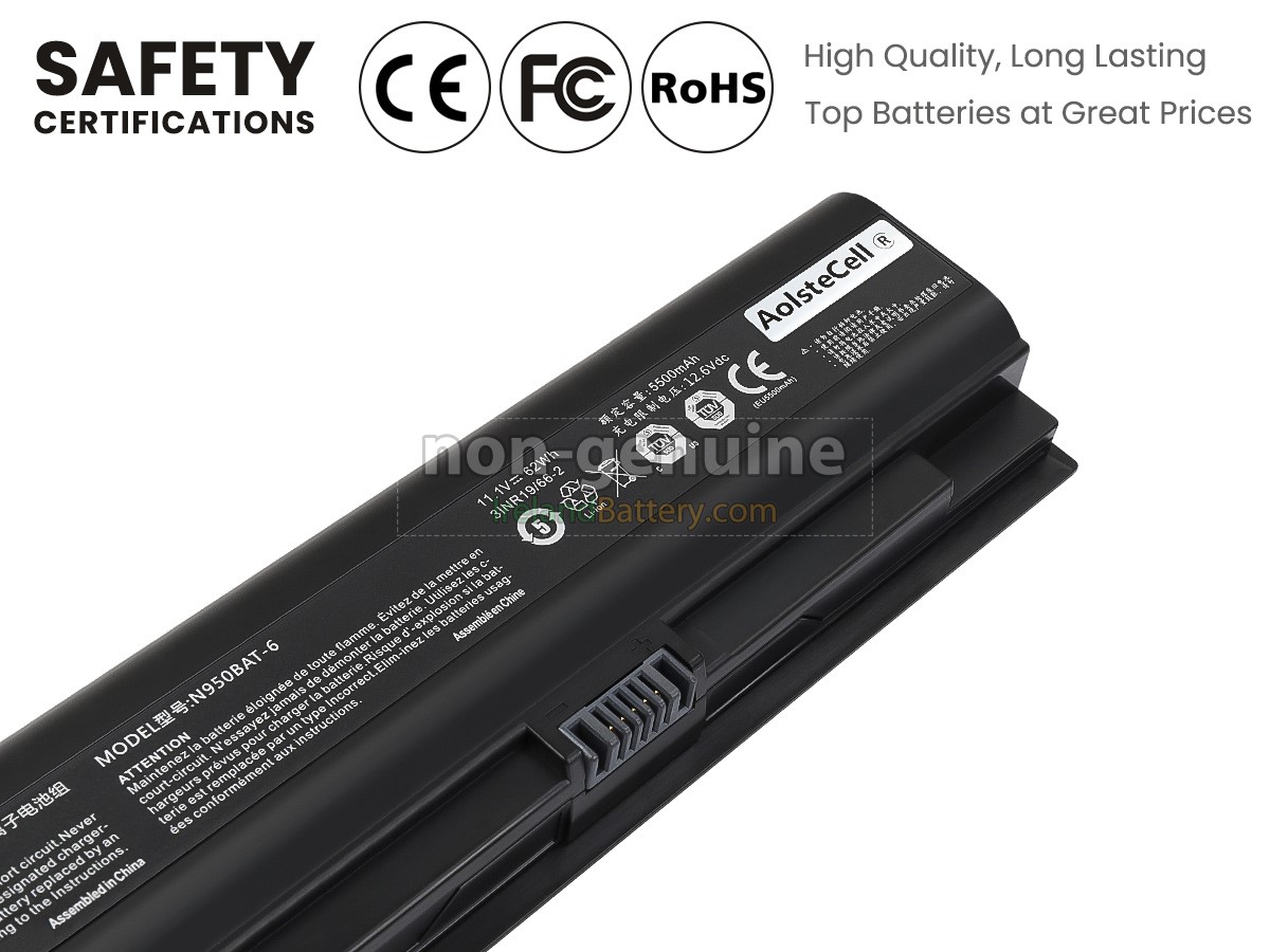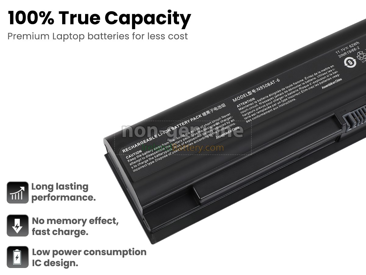 6 cells 62Wh Clevo N950TD excellent quality battery uses an intelligent control chip, which comes with higher performance and reliability, longer run-time and battery life. Built-in protection circuitry ensures its stability and safety, fast charge but slow power consumption.