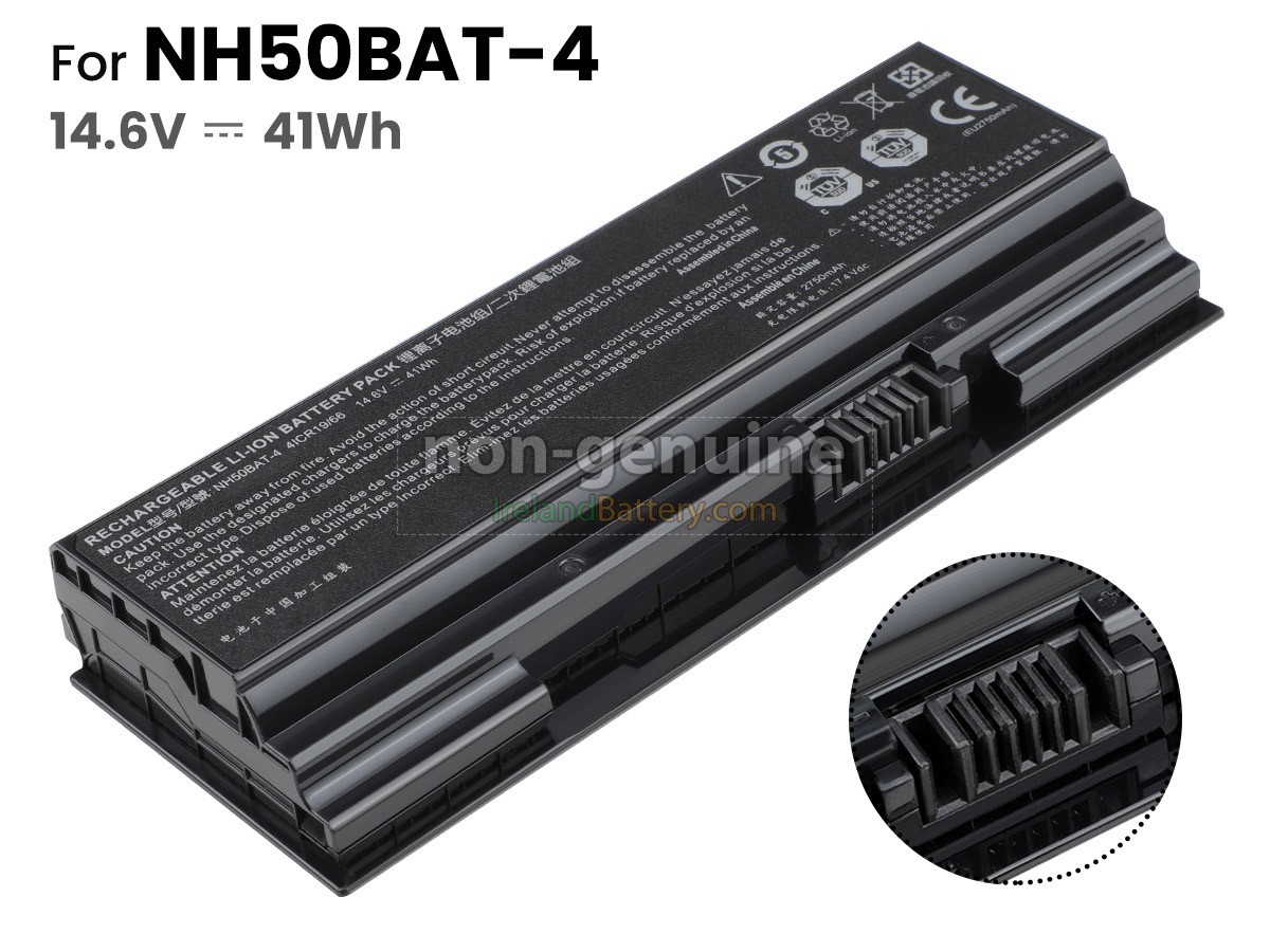 4 cells 41Wh Clevo NH50RH excellent quality battery uses an intelligent control chip, which comes with higher performance and reliability, longer run-time and battery life. Built-in protection circuitry ensures its stability and safety, fast charge but slow power consumption.