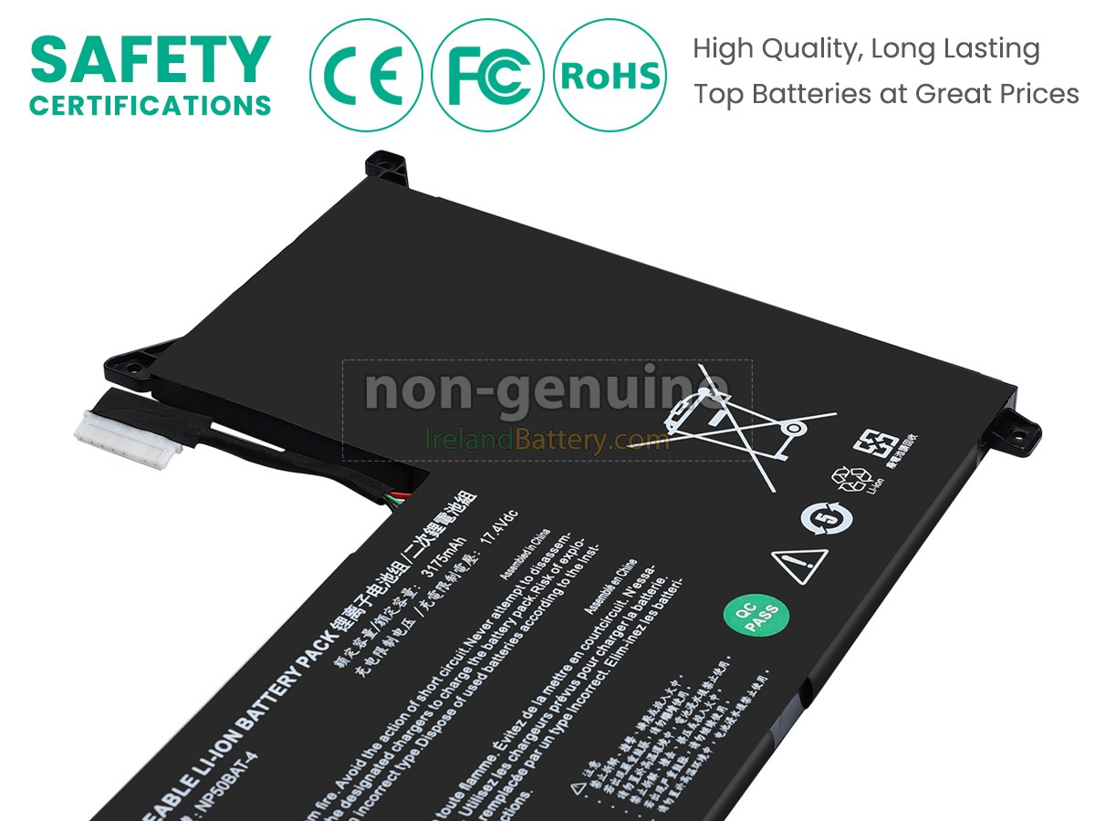 4 cells 49Wh Clevo NP50BAT-4 excellent quality battery uses an intelligent control chip, which comes with higher performance and reliability, longer run-time and battery life. Built-in protection circuitry ensures its stability and safety, fast charge but slow power consumption.