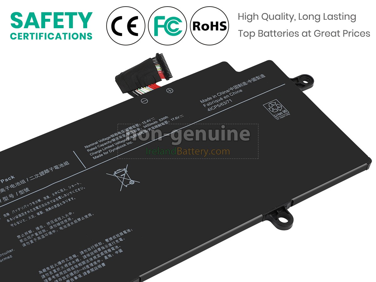 4 cells 53Wh Dynabook PORTEGE X30W-J-10X excellent quality battery uses an intelligent control chip, which comes with higher performance and reliability, longer run-time and battery life. Built-in protection circuitry ensures its stability and safety, fast charge but slow power consumption.
