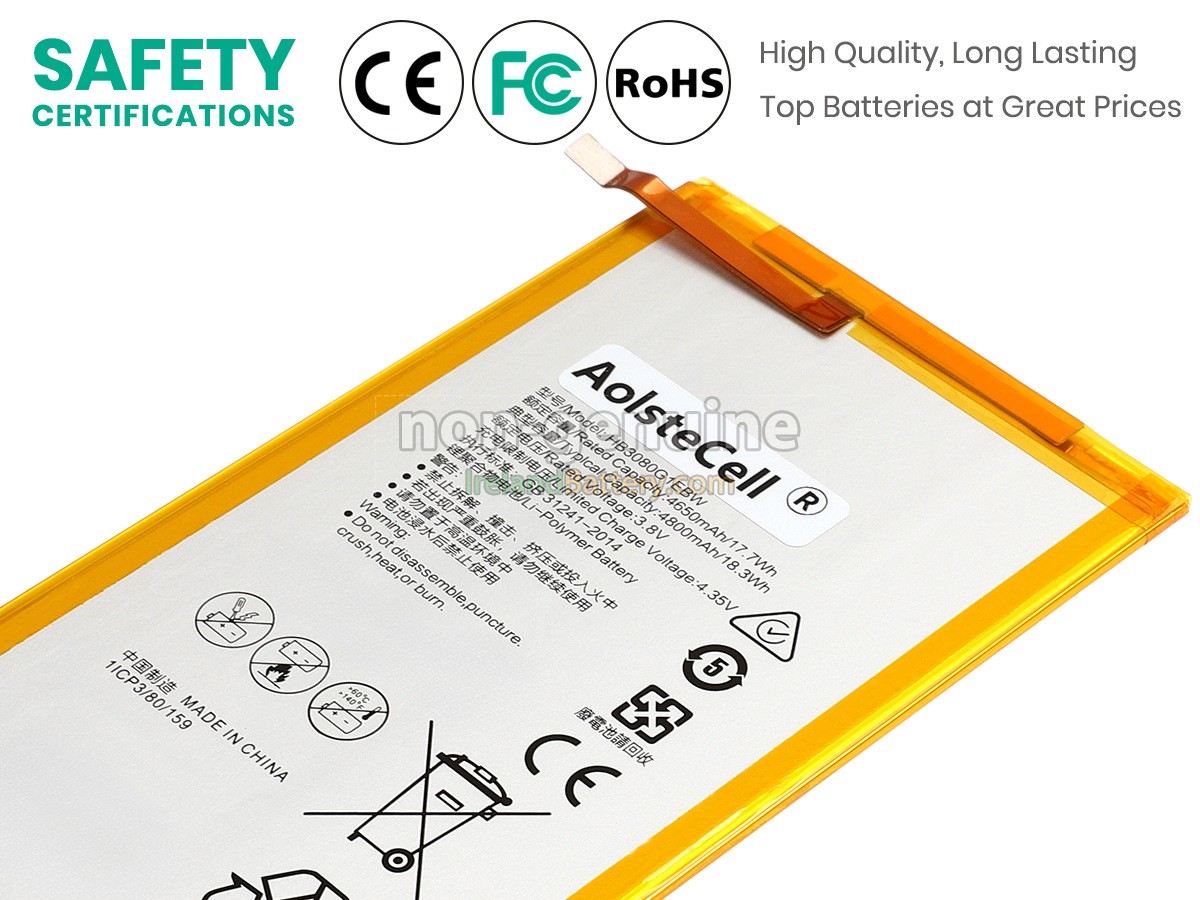 1 cells 17.7Wh Huawei HB3080G1EBC excellent quality battery uses an intelligent control chip, which comes with higher performance and reliability, longer run-time and battery life. Built-in protection circuitry ensures its stability and safety, fast charge but slow power consumption.