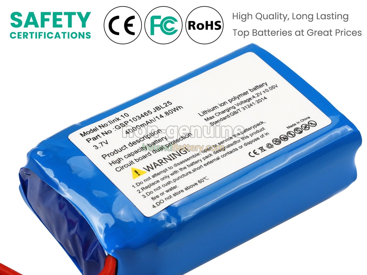 We specialize in providing high-quality batteries. The JBL LINK 10 Battery has passed tests according to Security Standards to ensure battery's quality. The interface metal and solid insulators of the JBL LINK 10 battery are made of Premium materials to ensure stable current input and durability. Round-sealed package ,faster delivery and thoughtful after-sales service will make you feel assured to purchase.