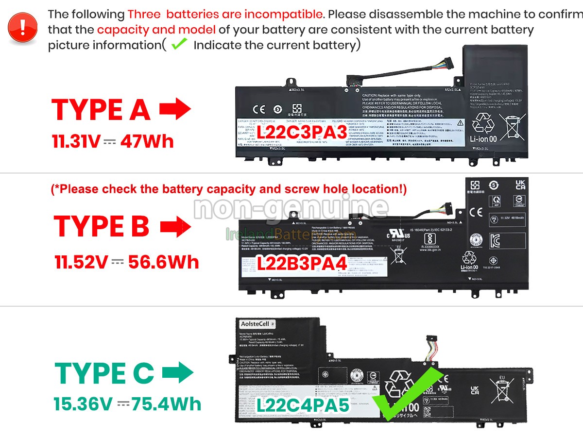 Note: Please confirm your battery and model and check the appearance of the battery before placing an order. If you are not sure about your battery part number, you can contact our online customer service in time to avoid delays in your use. Regardless of any problems you encounter during the purchase process, please contact us in time and we will be happy to help you with your problem.