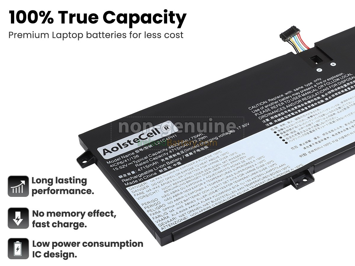 4 cells 75Wh Lenovo L21B4PH1 excellent quality battery uses an intelligent control chip, which comes with higher performance and reliability, longer run-time and battery life. Built-in protection circuitry ensures its stability and safety, fast charge but slow power consumption.