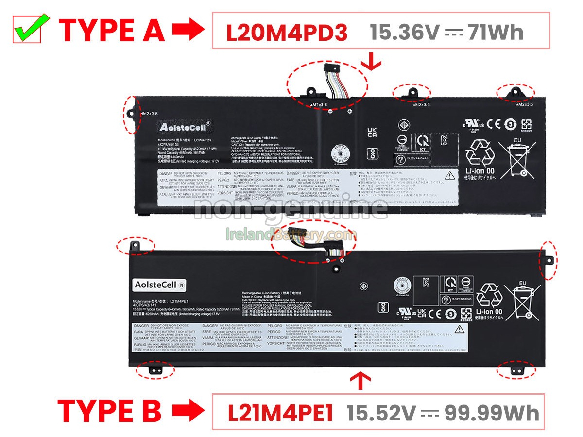4 cells 71Wh Lenovo THINKBOOK 16P G2 ACH-20YM0009UK excellent quality battery uses an intelligent control chip, which comes with higher performance and reliability, longer run-time and battery life. Built-in protection circuitry ensures its stability and safety, fast charge but slow power consumption.