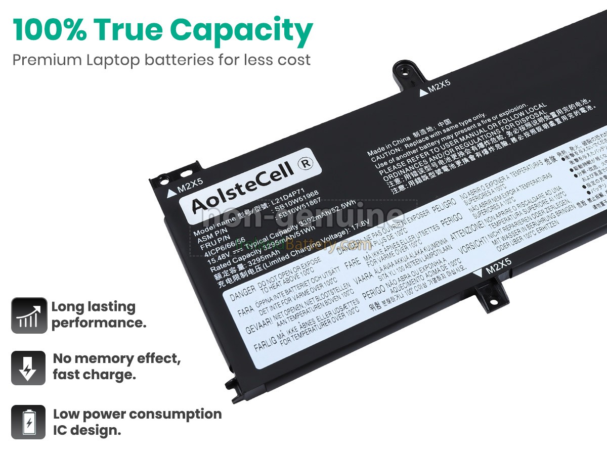 4 cells 52.5Wh Lenovo ThinkPad T14 GEN 3 (AMD)-21CF0030IX excellent quality battery uses an intelligent control chip, which comes with higher performance and reliability, longer run-time and battery life. Built-in protection circuitry ensures its stability and safety, fast charge but slow power consumption.