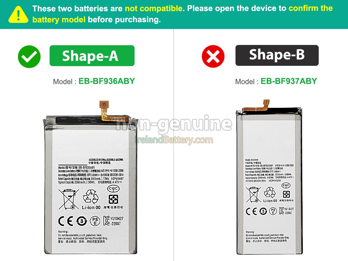 We specialize in providing high-quality batteries. The Samsung GALAXY Z FOLD 4 SM-F936U1 Battery has passed tests according to Security Standards to ensure battery's quality. The interface metal and solid insulators of the Samsung GALAXY Z FOLD 4 SM-F936U1 battery are made of Premium materials to ensure stable current input and durability. Round-sealed package ,faster delivery and thoughtful after-sales service will make you feel assured to purchase.