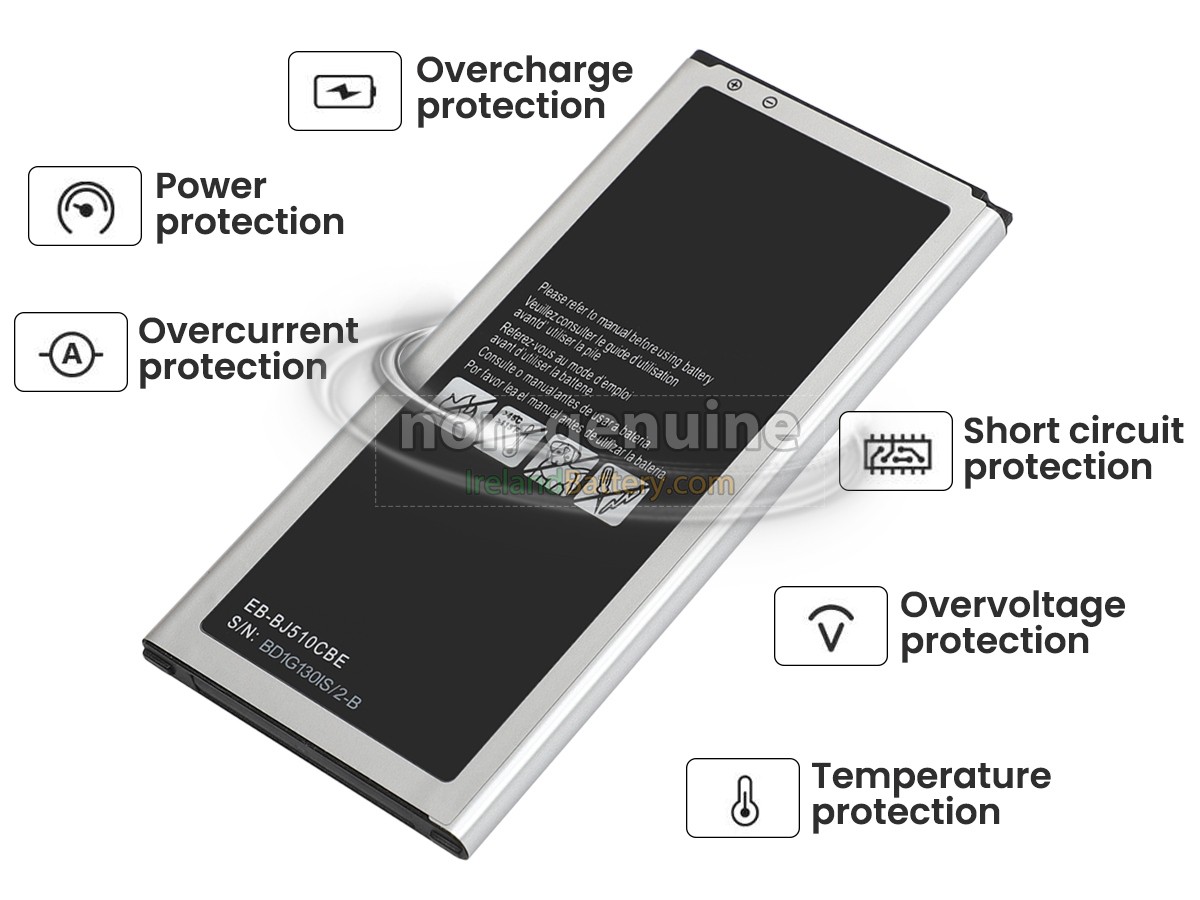 1 cells 11.94Wh Samsung J510FQ excellent quality battery uses an intelligent control chip, which comes with higher performance and reliability, longer run-time and battery life. Built-in protection circuitry ensures its stability and safety, fast charge but slow power consumption.