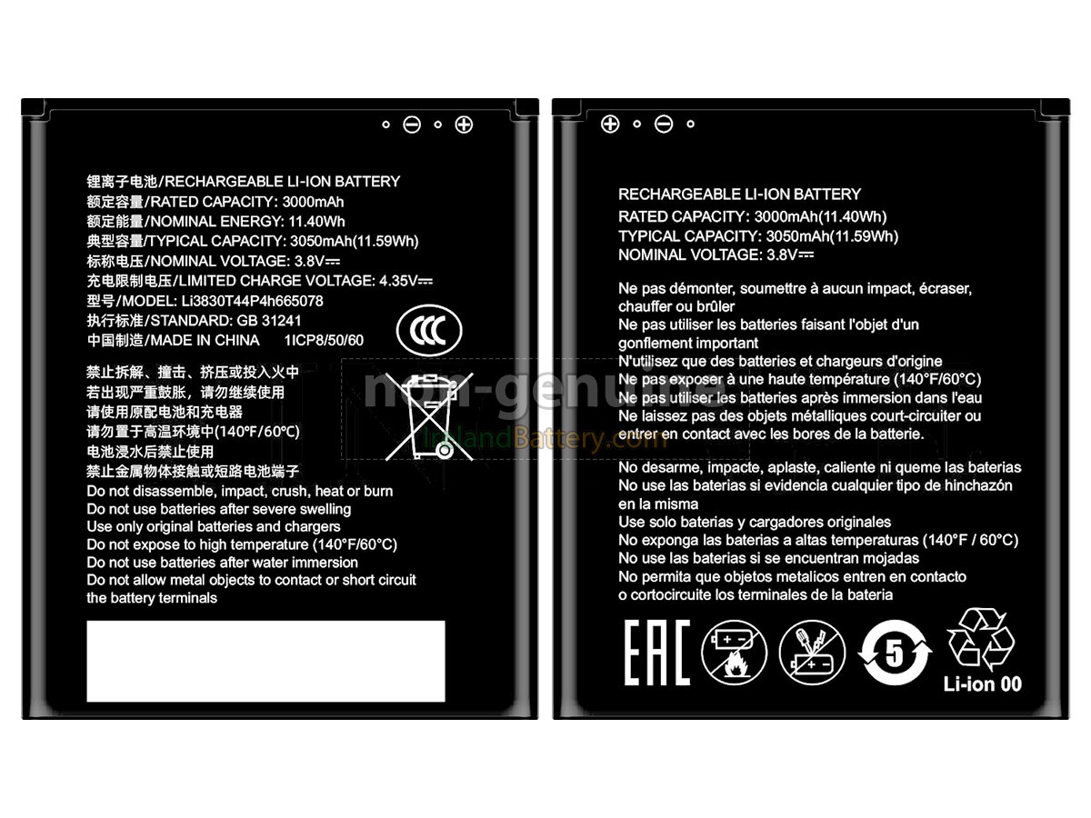 We offer a 12-month warranty to replace the ZTE LI3830T44P4H665078 battery! In the meantime, if your battery fails due to quality problems, we will replace it with a new one for free.